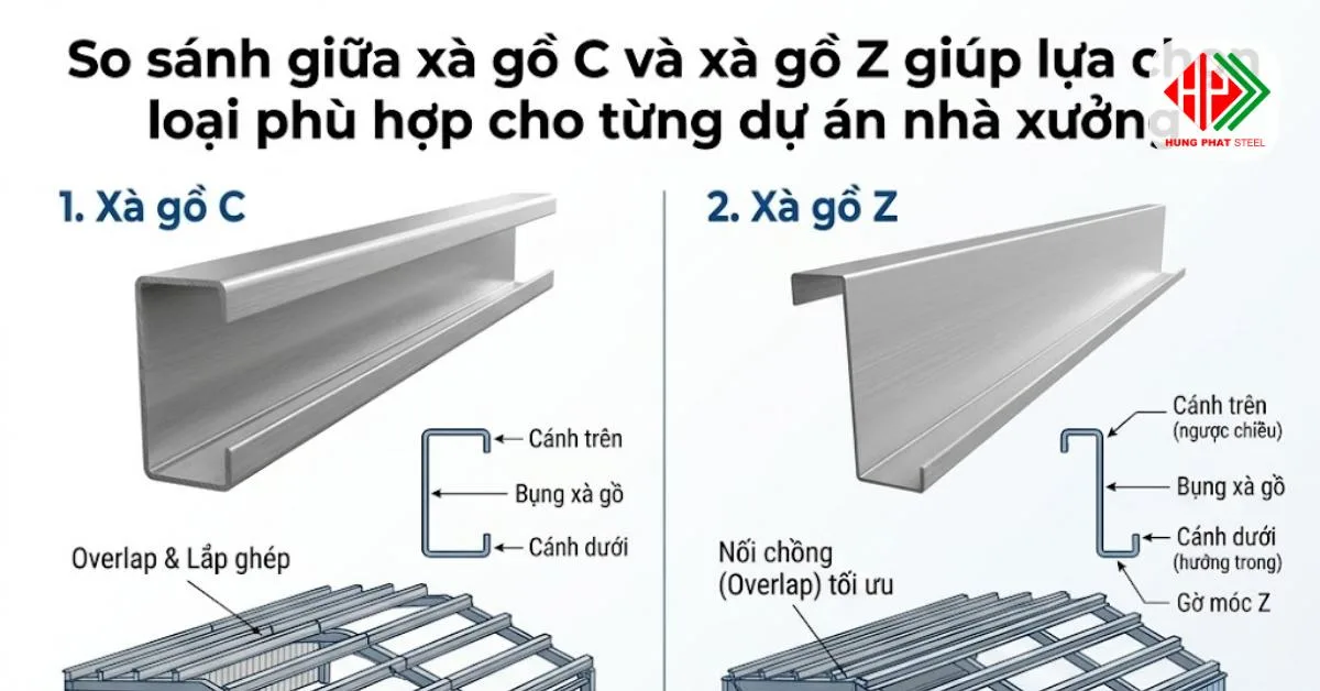 | Tiêu Chí | Xà Gồ Chữ C | Xà Gồ Chữ Z |