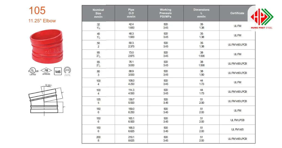 Thép Hùng Phát cam kết cung cấp cút nối 11.25° được sản xuất theo đúng tiêu chuẩn kỹ thuật như JIS, ASTM, BS hoặc ISO. Tất cả sản phẩm đều có nguồn gốc rõ ràng, giấy chứng nhận chất lượng (CO – CQ) đầy đủ, giúp khách hàng yên tâm tuyệt đối khi sử dụng trong các công trình yêu cầu độ chính xác cao.