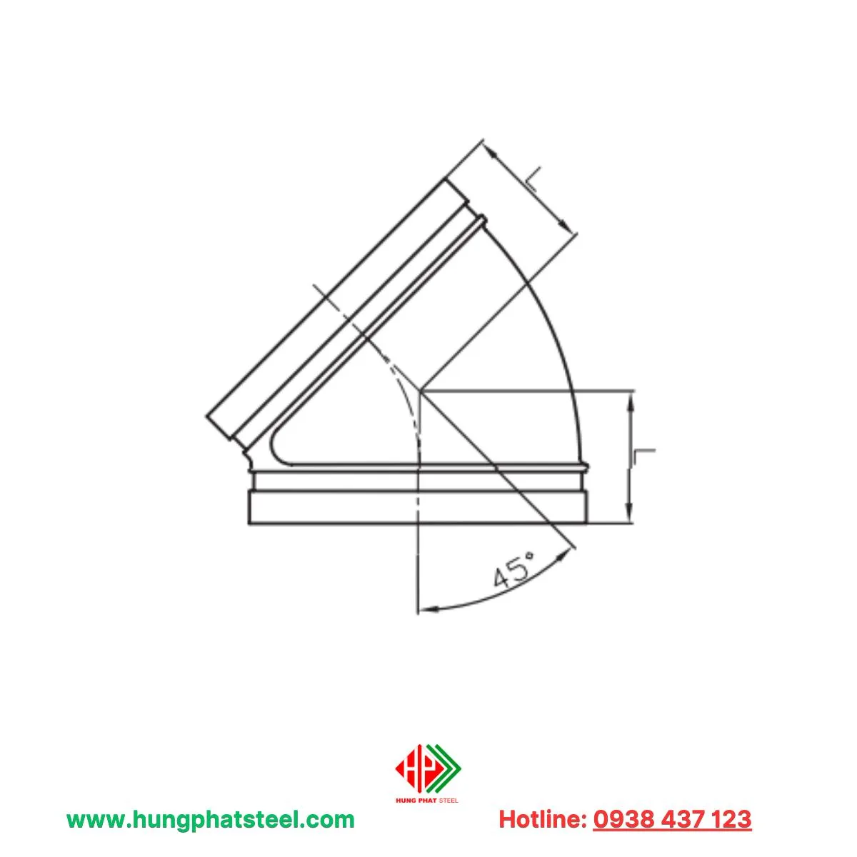 Độ cong 45° được tính toán hợp lý giúp dòng lưu chất chuyển hướng êm, hạn chế xoáy và giảm tổn thất áp suất so với các phương án chuyển góc gấp.