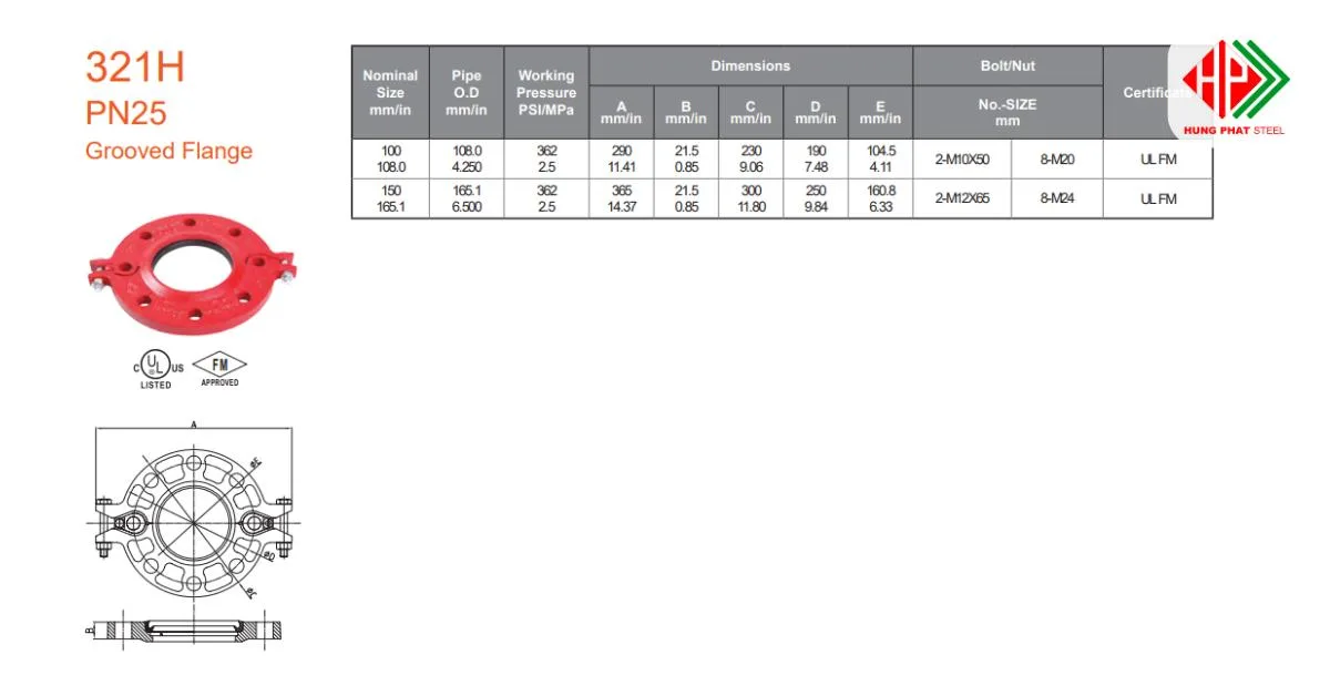 Thép Hùng Phát duy trì nguồn cung đa dạng kích thước mặt bích rãnh 321 PN16, phù hợp cho nhiều hạng mục khác nhau. Việc chủ động nguồn hàng giúp khách hàng yên tâm triển khai dự án đúng kế hoạch, hạn chế phát sinh do chậm vật tư.