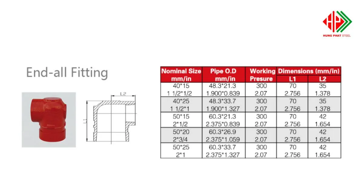 Đồng thời, End-all còn hỗ trợ kiểm soát dòng chảy khi thử áp, bảo trì hoặc mở rộng hệ thống, giúp tăng độ an toàn và kéo dài tuổi thọ cho đường ống và các phụ kiện liên quan.
