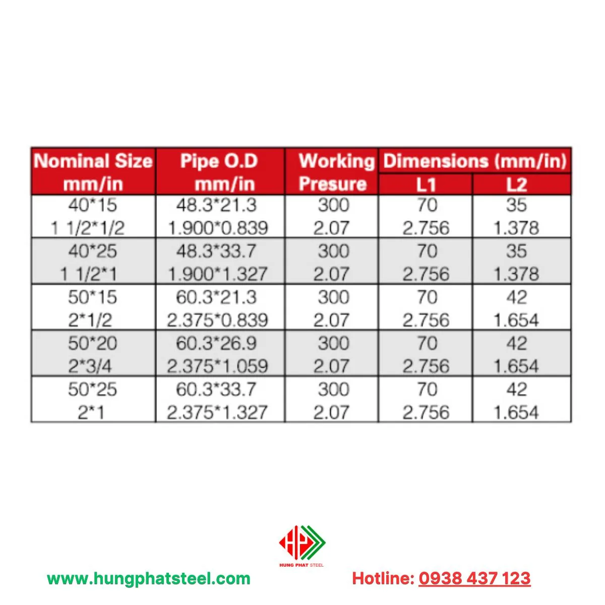 | Pipe O.D (mm/in) | Quy đổi (inch) | Giá tham khảo (VNĐ/cái) |