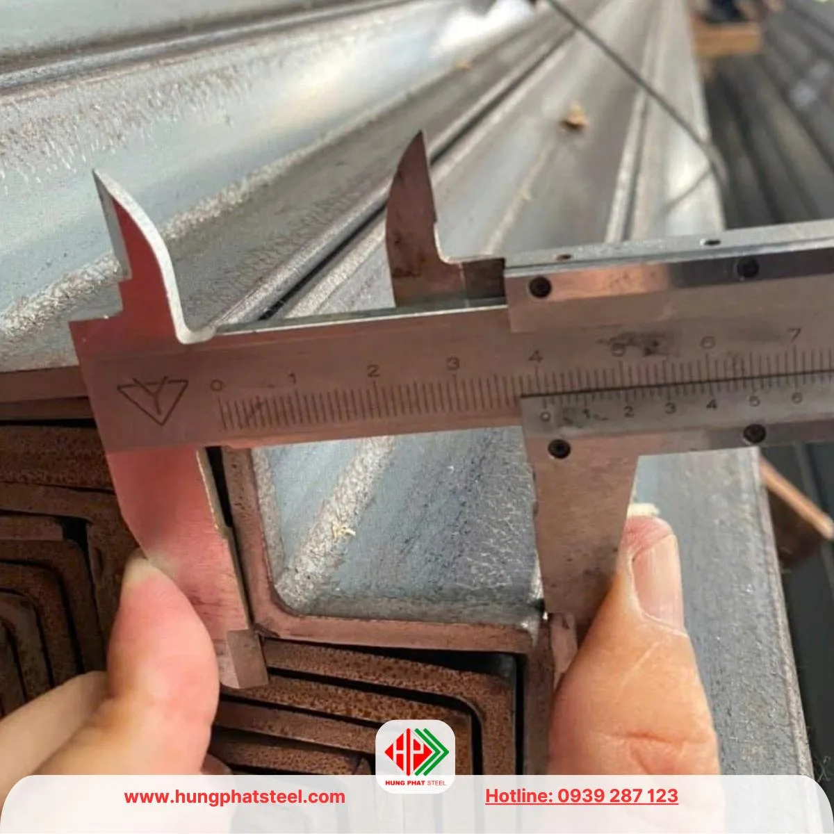 - Đo độ dày thực tế và cân trọng lượng cây thép để đảm bảo đúng quy cách.