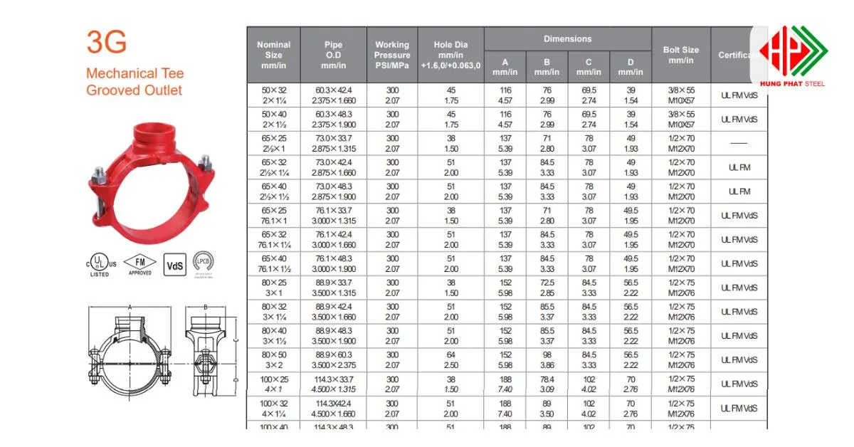 Đây là dòng tiêu chuẩn, được thiết kế với kết cấu chắc chắn, phù hợp cho các hệ thống có áp lực làm việc trung bình đến cao. Tê cơ khí 3G kiểu rãnh cho phép tạo nhánh trực tiếp trên ống thép mà vẫn đảm bảo độ kín và độ ổn định lâu dài.