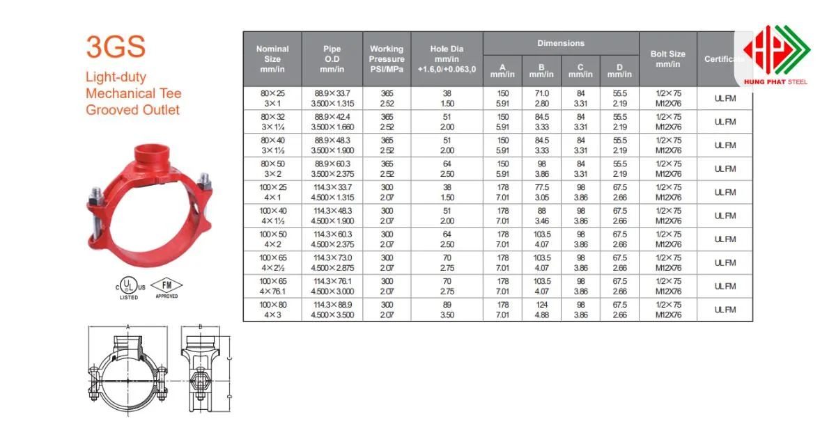 Nhờ thiết kế cơ khí chắc chắn kết hợp đầu ra dạng rãnh, sản phẩm cho phép kết nối nhánh hiệu quả trên ống thép mà không làm ảnh hưởng đến kết cấu đường ống hiện hữu. Điều này đặc biệt phù hợp với các công trình yêu cầu độ tin cậy cao như hệ thống PCCC, HVAC và cấp thoát nước công nghiệp.