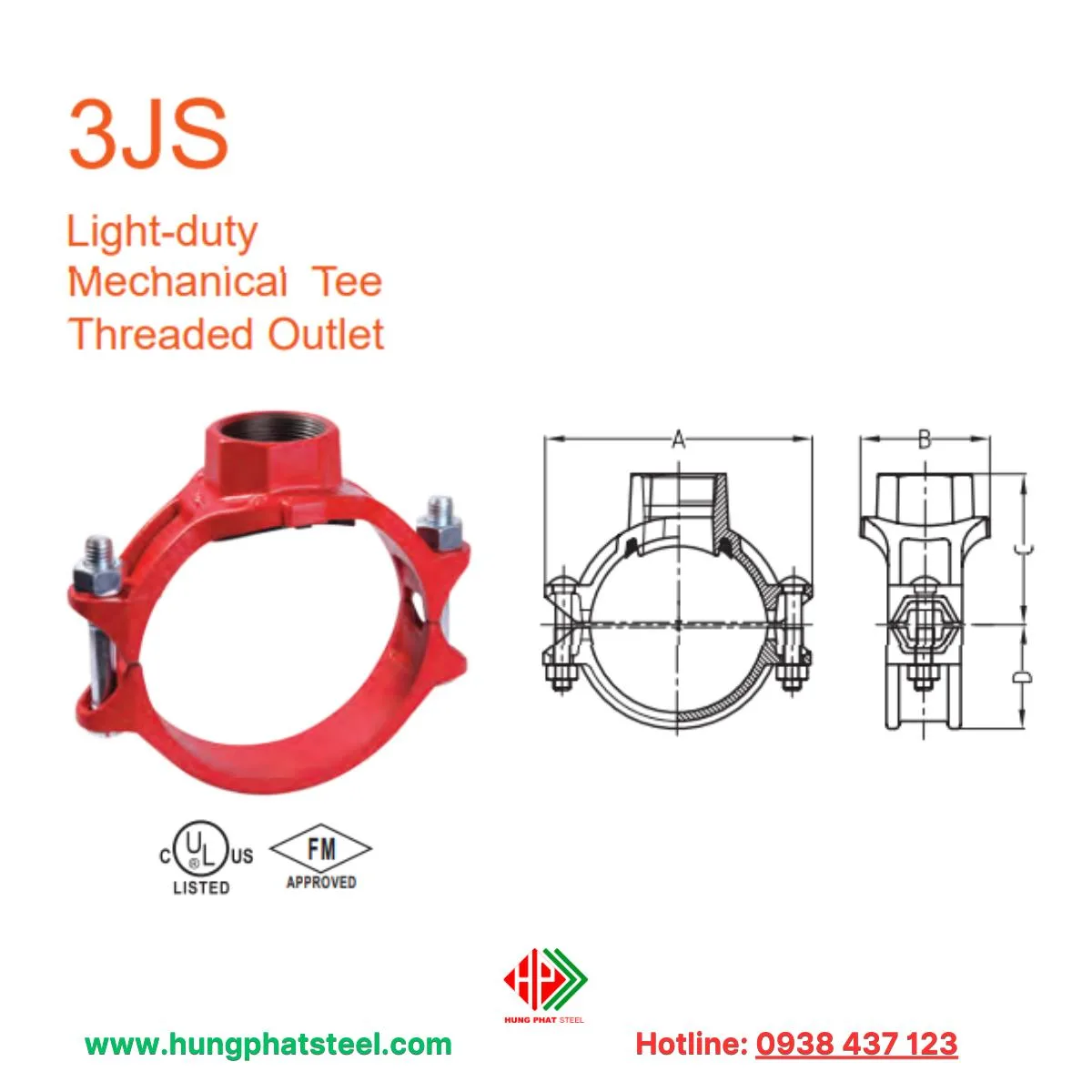 Tê cơ khí 3JS loại nhẹ nhánh ren