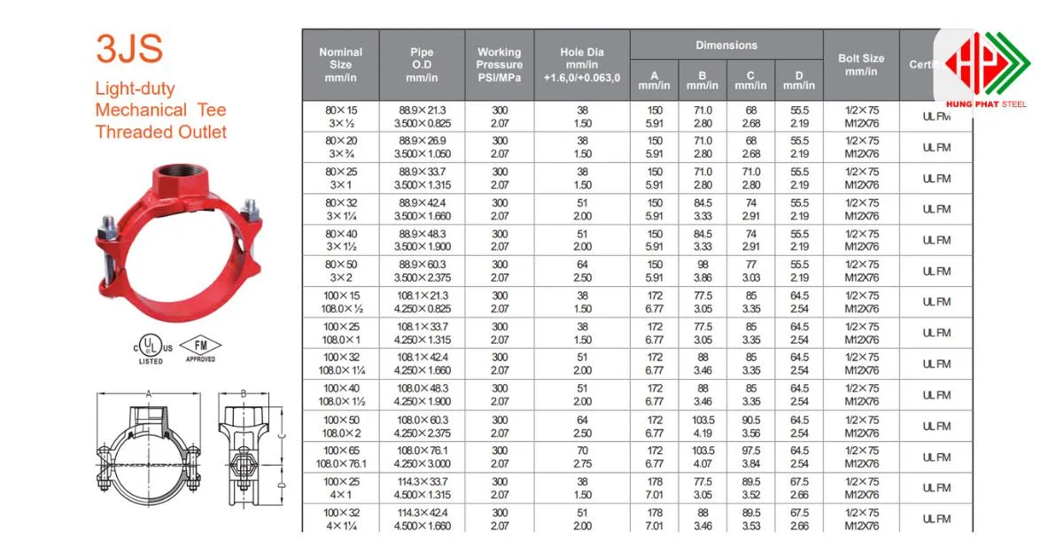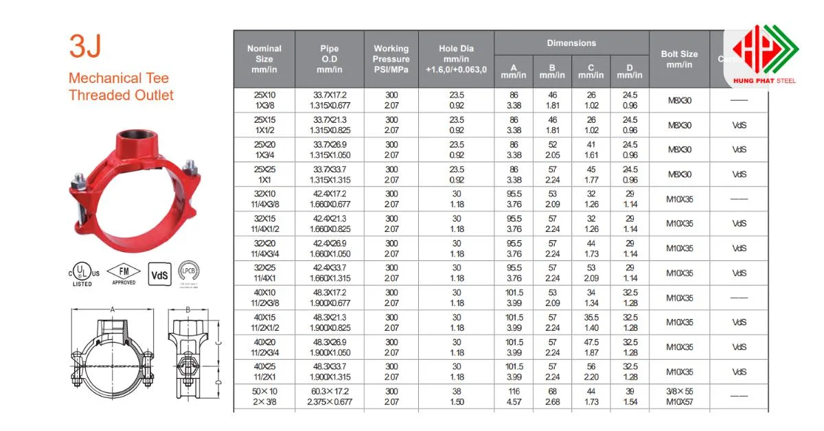 Không phải hệ thống nào cũng sử dụng kết nối rãnh cho đường ống nhánh. Tê cơ khí 3J cho phép tạo nhánh ren trực tiếp trên ống thép, giúp kết nối nhanh với van, đầu phun hoặc thiết bị ren mà không cần chuyển đổi phụ kiện trung gian.