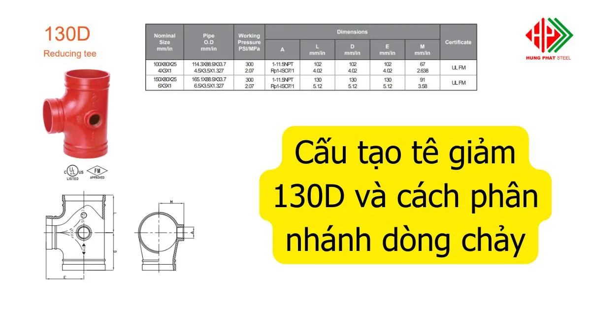 Cấu tạo tê giảm 130D và cách phân nhánh dòng chảy