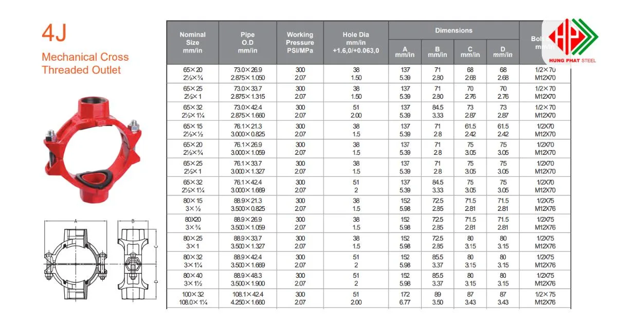 Trong các hệ thống PCCC, yêu cầu về độ an toàn và độ kín luôn được đặt lên hàng đầu. Thập cơ khí ren 4J cho phép lắp đặt đầu phun, van hoặc đường ống nhánh một cách chính xác, đảm bảo tính ổn định khi hệ thống hoạt động.