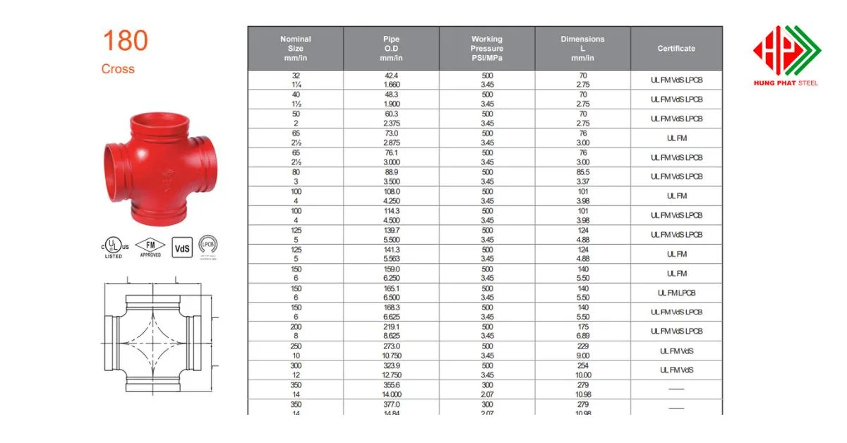 Thép Hùng Phát cung cấp đầy đủ các dòng Thập ren 180 như: tiêu chuẩn, dạng mỏng (180X), giảm (180R) và giảm dạng mỏng (180RX), đáp ứng nhiều nhu cầu thi công khác nhau, từ công trình dân dụng đến công nghiệp.