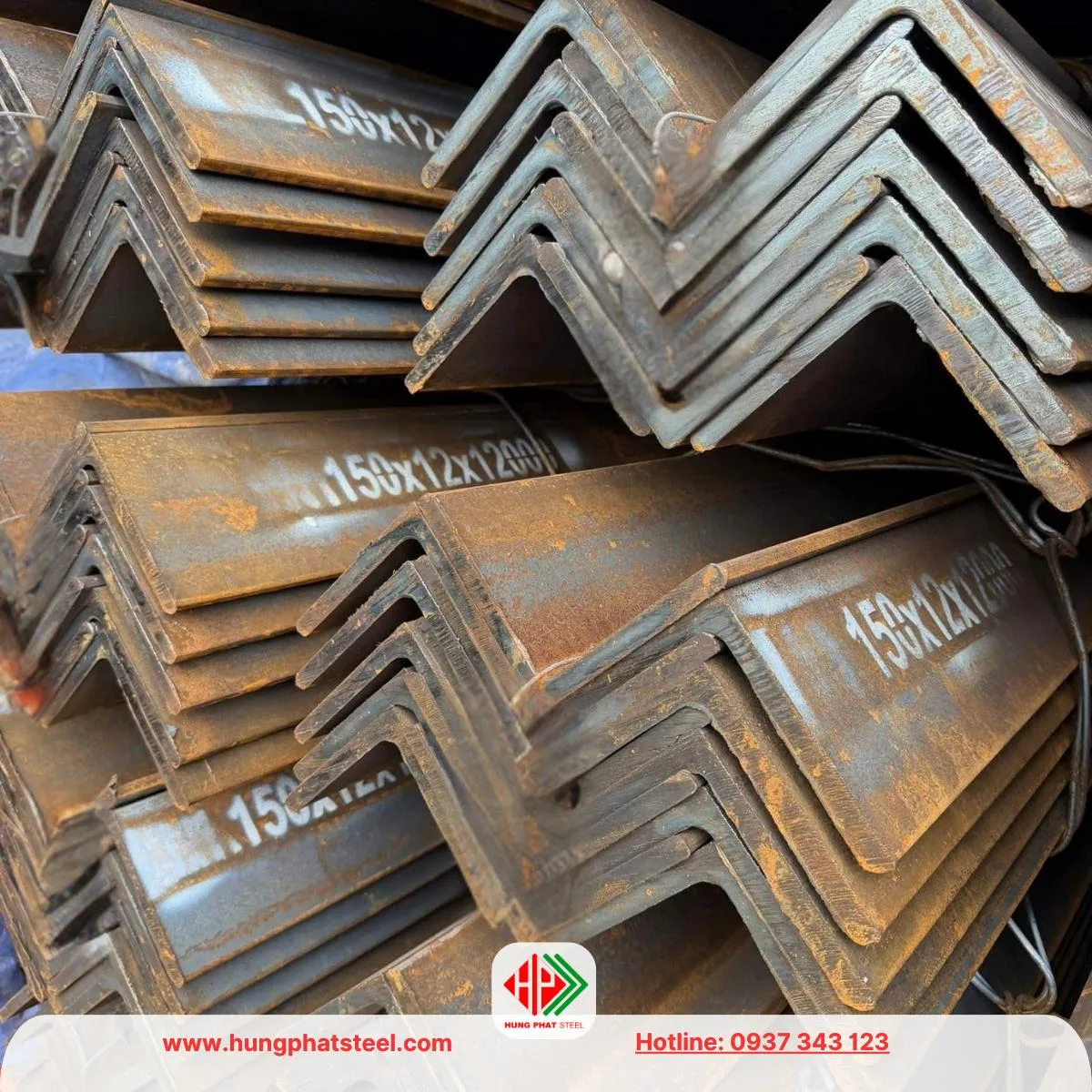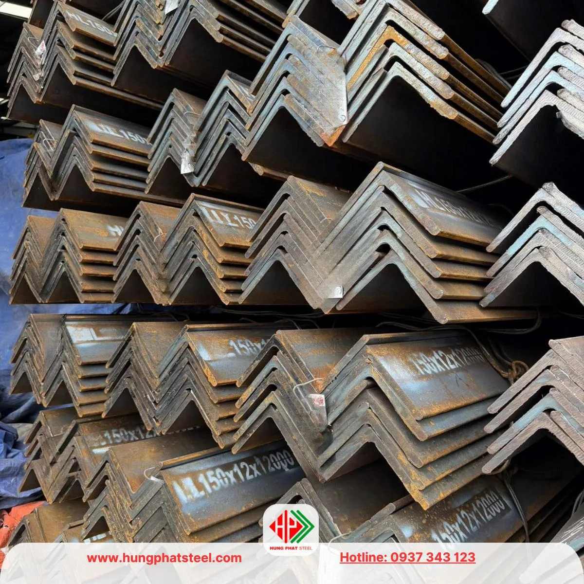 Thép hình V150 An Khánh (hay còn gọi là thép góc, thép L) với kích thước 2 cạnh là 150x150mm, độ dày cạnh dao động 10mm, 12mm, 15mm, với chiều dài cây 12 mét hoặc 6 mét