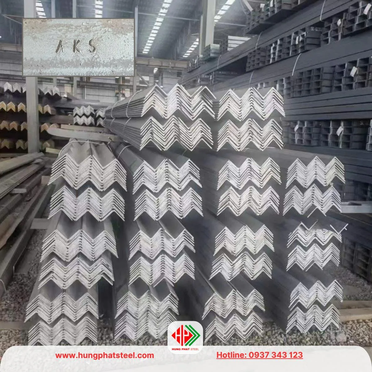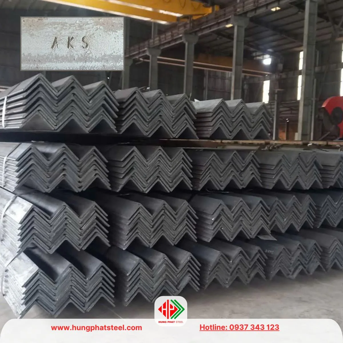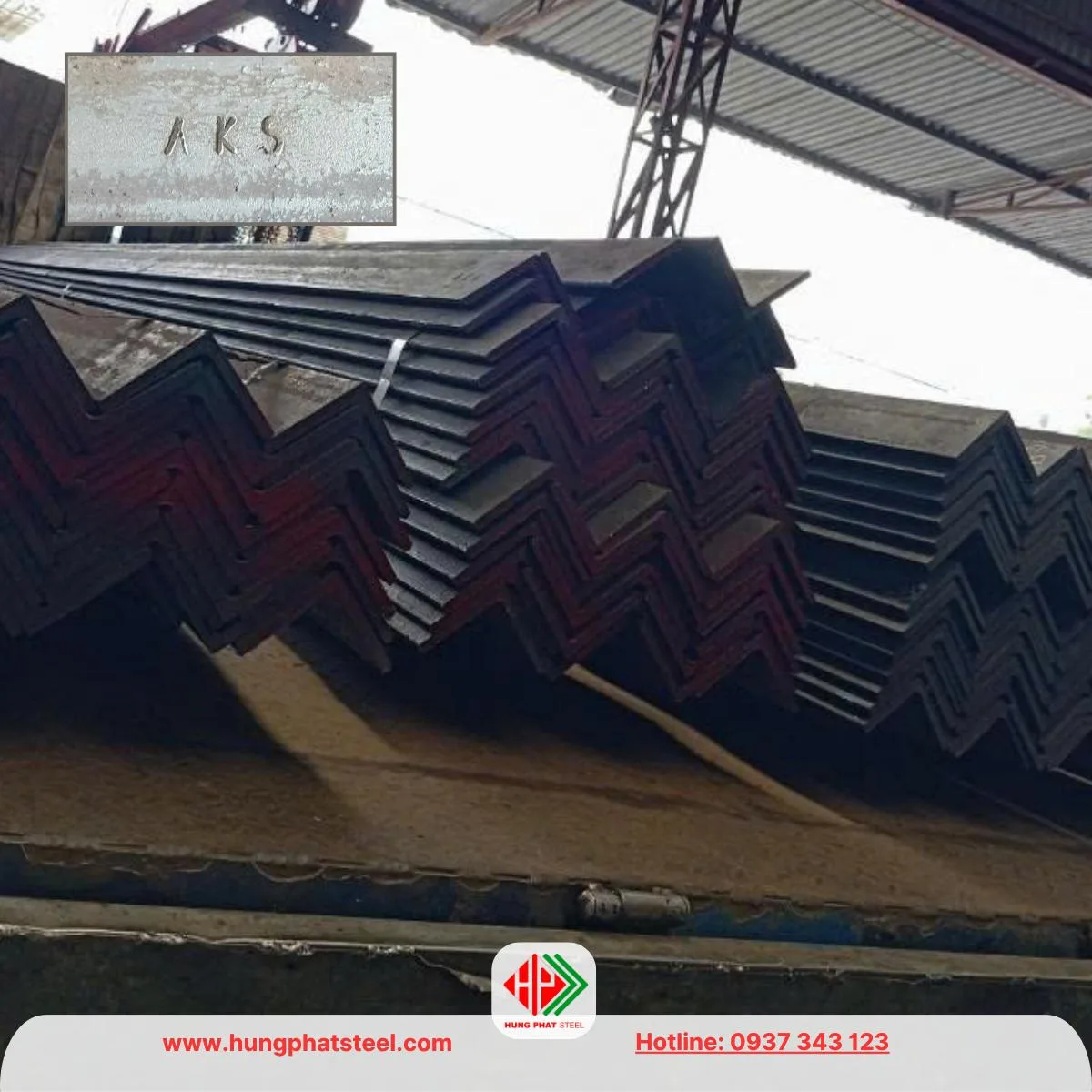 - Mác thép và kích thước in rõ ràng:Thông tin như “V90x90x8 – SS400 – AKS” được in/khắc giúp dễ kiểm tra và truy xuất nguồn gốc.