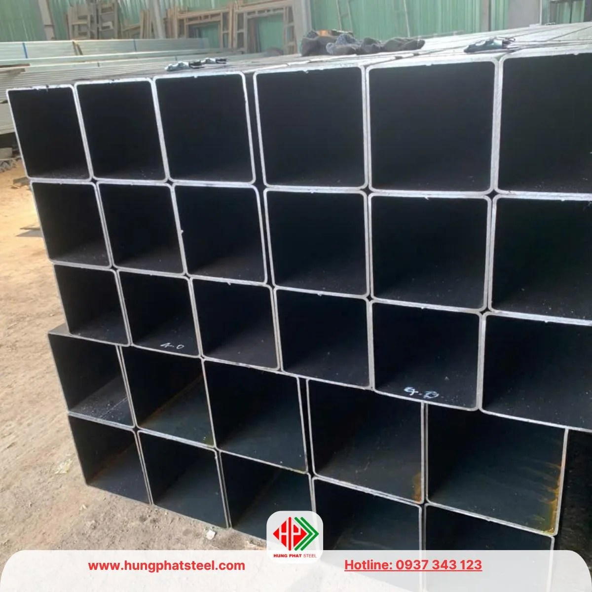 - Đặc điểm : Đây là loại hộp thép không qua quá trình mạ kẽm, giữ nguyên màu đen của thép.