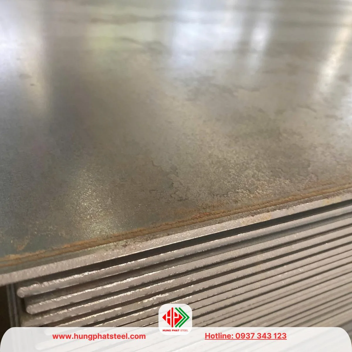 - Bề mặt: Cán nóng trơn (Hot Rolled – bề mặt đen xám, có lớp oxit), tấm gân, tấm mạ kẽm nhúng nóng theo yêu cầu