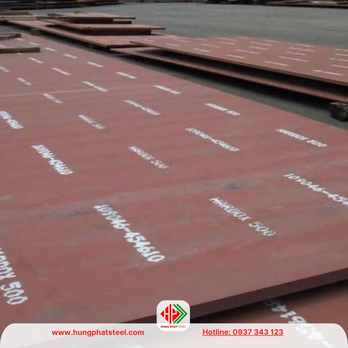 Thép Hùng Phát cam kết cung ứng Hardox 500 chính hãng, giá cạnh tranh, giao hàng nhanh trên toàn quốc, đáp ứng mọi nhu cầu trong các ngành khai thác, cơ khí nặng, xe ben công trình và thiết bị chịu mài mòn cao.