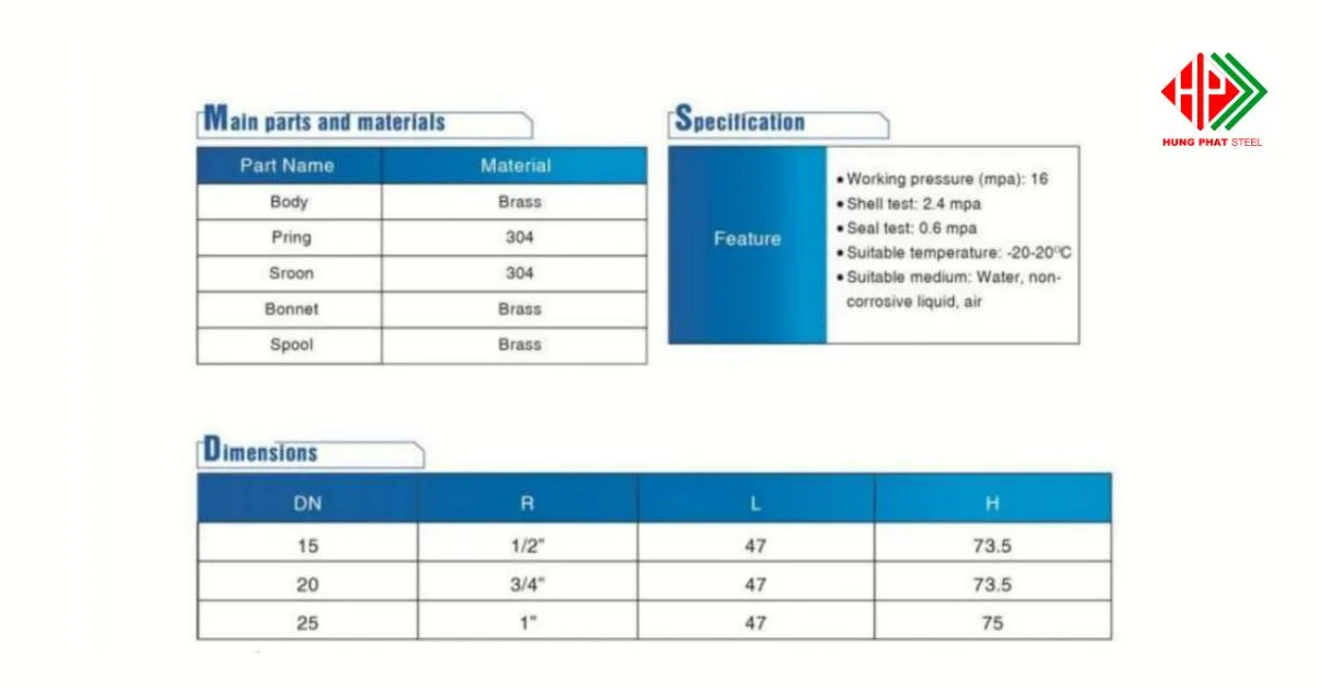 Van được sản xuất từ vật liệu gang hoặc đồng chất lượng cao, kết hợp gioăng kín NBR chịu nhiệt và chống ăn mòn tốt, đảm bảo hoạt động ổn định trong môi trường nước, khí hoặc chất lỏng không ăn mòn.